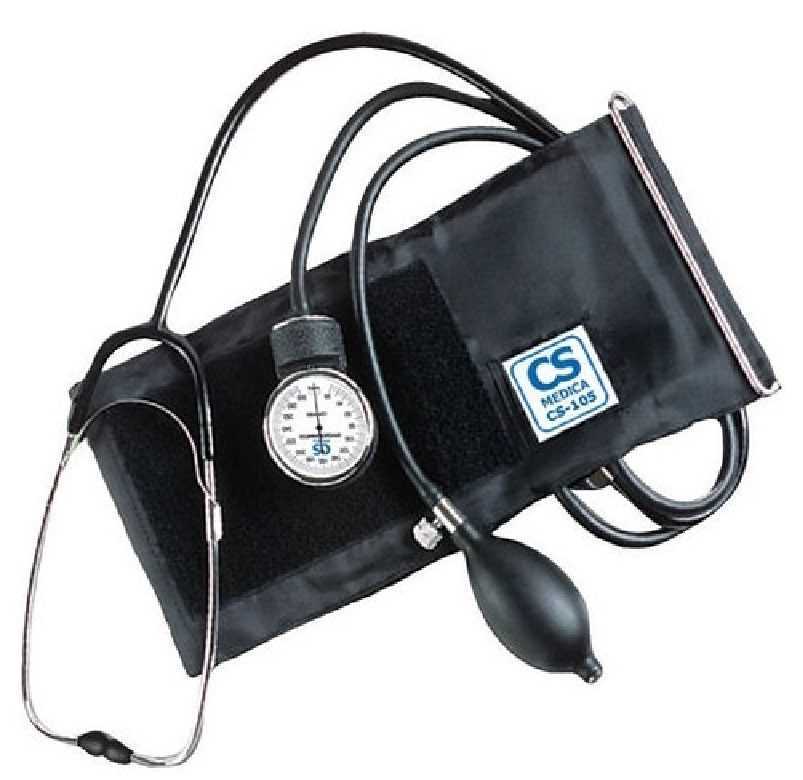 Является весьма компактным и классическим устройством. CS Medica CS 105 оснащен встроенным непосредственно в саму манжету фонендоскопом с мягкими ушными накладками. Также, в комплекте идет манометр, который оснащен качественным, прочным металлическим корпусом и крупным циферблатом. Размер манжеты составляет 22-38 см. Прекрасно подходит для измерения давления у детей, а также худых людей.