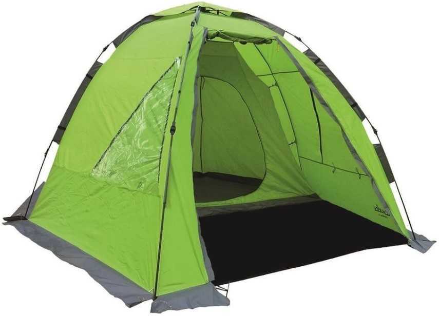 Отличная недорогая комплектация без дополнительных функций, где комфортно расположатся четыре человека. Нет навеса или места для отдыха, но есть небольшой тамбур, где можно оставить рюкзаки, обувь. Имеет один вход и куполообразную форму. Из-за сильного сужения кверху сидеть всем сразу не получится. Но если вам просто нужно переночевать компанией ночь, то это оптимальный летний вариант за доступную стоимость.