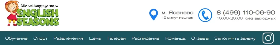 Следующее место рейтинга принадлежит детскому городскому лагерю в Ясенево. За 2 недели отдыха дети побывают на 50 занятиях английского, которые проводят в игровой форме. Ученики научатся раскрепощено говорить на иностранном языке и четко произносить фразы, серьезно увеличат словарный запас и обогатят речь культурным сленгом. Дети ставят юмористические номера и театральные постановки на английском. Среди развлечений отмечают спортивные мероприятия, квесты, пенные вечеринки.