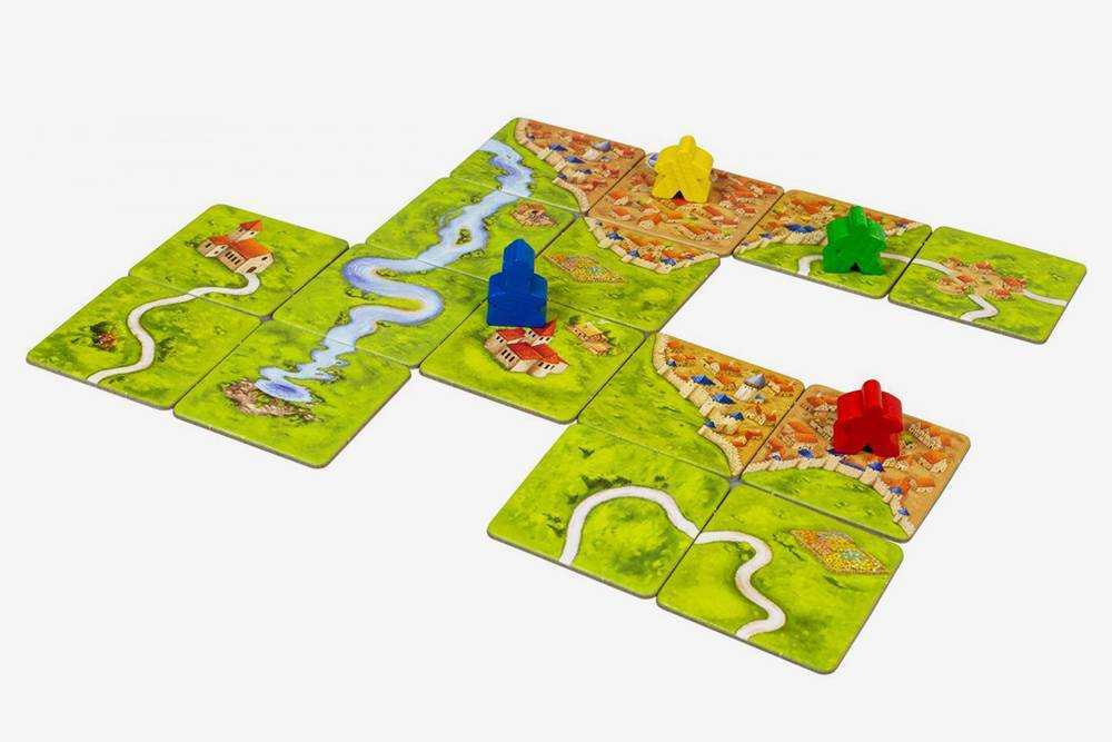 Игра по принципу домино, только красивее и с более сложными правилами. Участникам нужно подбирать подходящие друг другу карточки с картинками — так, чтобы дороги и реки удлинялись, пастбища росли, а города и монастыри расширялись. Но этого недостаточно, чтобы выиграть.