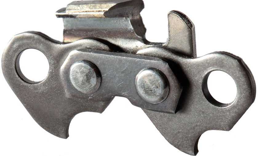 - Чипперные звенья выглядят как серп, и имеют низкие показатели производительности. Их главным достоинством считается простота заточки при помощи напильника. Именно за счет простоты заточки, многие пильщики предпочитают выбирать модели с чипперным или серповидным видом звеньев