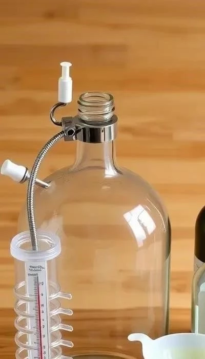 - Установка гидрозатвора: Плотно закройте емкость пробкой с гидрозатвором. Установите гидрозатвор и поместите емкость в темное место с температурой 18-22°C для тихого брожения.