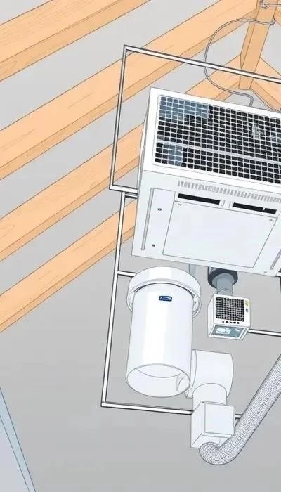 - Установка внутреннего блока: Размещение внутреннего блока в подсобном помещении или за подвесным потолком.