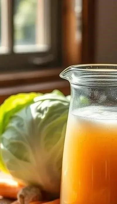 - Источник витаминов: Капустный квас богат витаминами группы B, витамином C и витамином K.