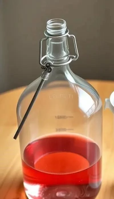 - Установите гидрозатвор и оставьте вино бродить в прохладном темном месте (18-22°C) на 3-4 недели.