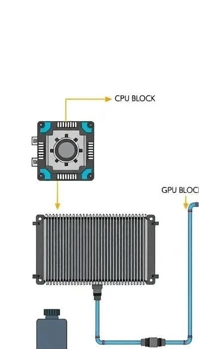 - Водоблок: Устанавливается непосредственно на процессор или видеокарту и отводит тепло в жидкость.